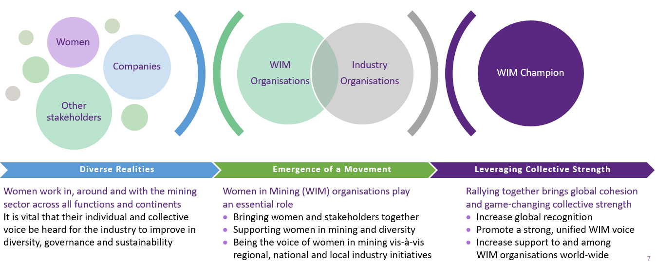 The global WIM movement has made some great strides in 2020! In July we started discussions with WIM organisations worldwide to organise a global coordination platform aiming to leverage collective strength to promote diversity, gender equality and inclusion in the mining sector with a strong, unified WIM voice. The Founding Committee, composed of 14 WIM organisations from every continent, has since worked on defining the specific purpose, objectives and mission of the Network.